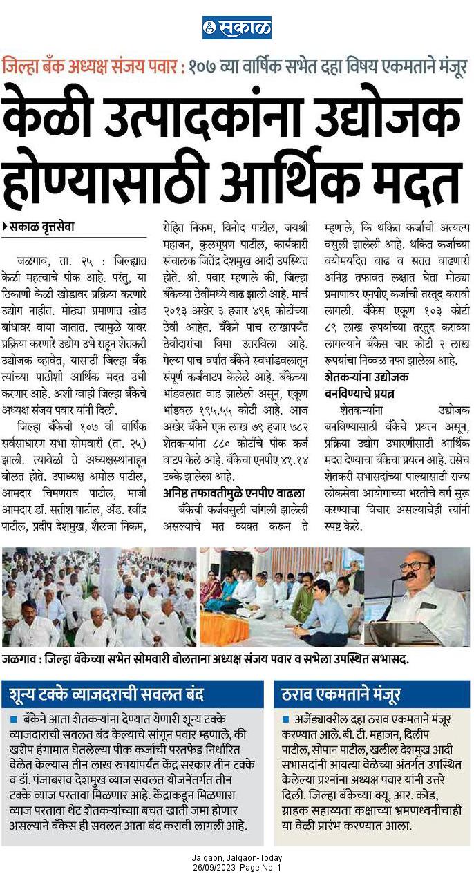 दि जळगाव जिल्हा मध्यवर्ती सहकारी बँक आपले स्वागत करीत आहे.