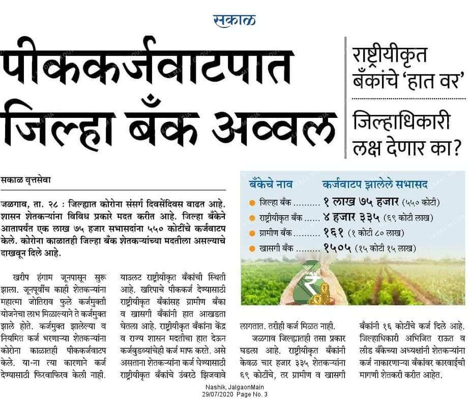 किसान कार्ड वापरत जिल्हा बँक दोन राज्यात प्रथम