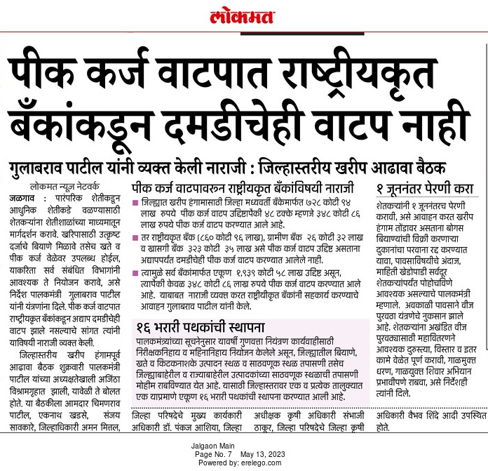पीककर्ज वाटपात जिल्हा बँक अव्वल